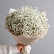 Лёгкий и изящный монобукет из белой гипсофилы — словно облако в руках. Подчёркивает чистоту чувств и гармонию. Отличный выбор для свадеб, фотосессий или подарка с минималистичной эстетикой.