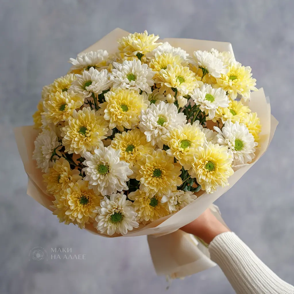 Создан специально для осенних дней — уютный, тёплый, с нотками меланхолии. Букет из хризантем идеально подходит для 1 сентября, Дня учителя или сезонного декора.