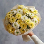 ГлавнаяКаталогМонобукетыХризантемыМонобукет из хризантем «Подарок сентября»