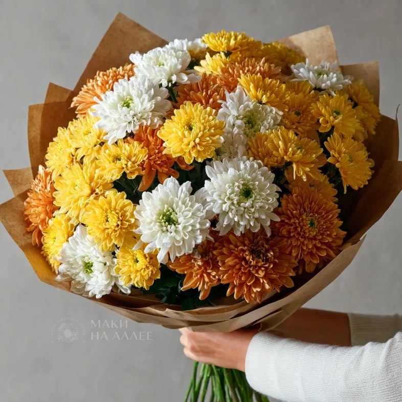 ГлавнаяКаталогМонобукетыХризантемыМонобукет из хризантем «Лесное золото»
