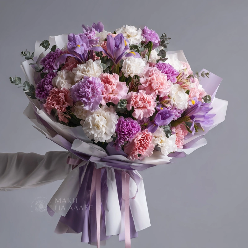 ГлавнаяКаталогБукетыГвоздикиБукет с гвоздиками «Гармония оттенков»