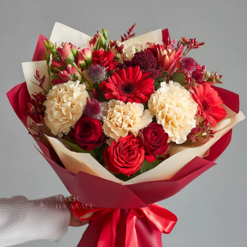 Лаконичная композиция, способная выразить то, что трудно сказать словами. Гвоздики идеально подходят для оформления благодарственного подарка в сдержанном, но выразительном стиле.