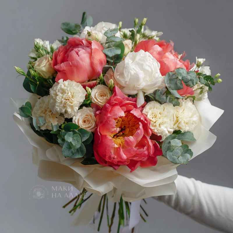 ГлавнаяКаталогБукетыПионыБукет с пионами «Персиковый закат»