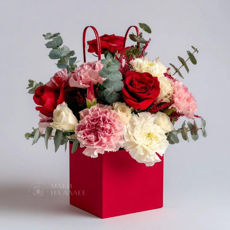 ГлавнаяКаталогКомпозицииВ сумочкахКомпозиция в сумочке «Цветы в ритме города»