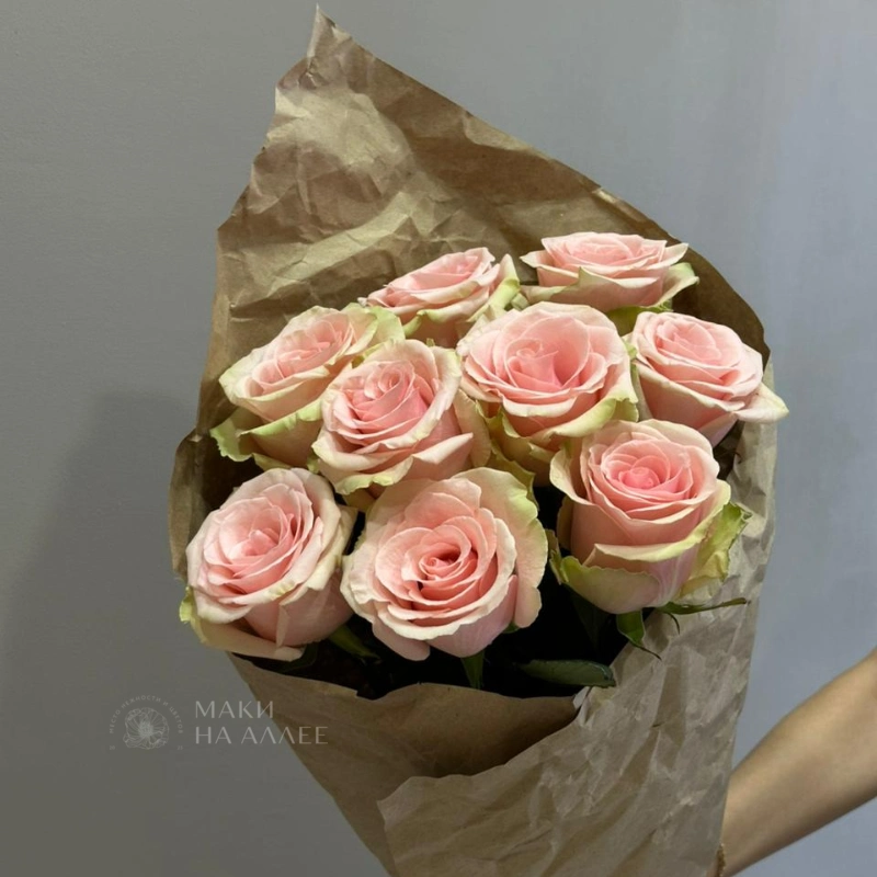 Возможна замена некоторых позиций в составе букета по согласованию, если цветы временно недоступны из-за сезонности или особенностей поставок.Букет из нежно-розовых роз, завёрнутый в коричневую бумагу, создаёт элегантный и сдержанный образ. Нежные оттенки роз придают композиции романтичность и изящество. Букет станет прекрасным подарком для тех, кто ценит классическую красоту и деликатность.